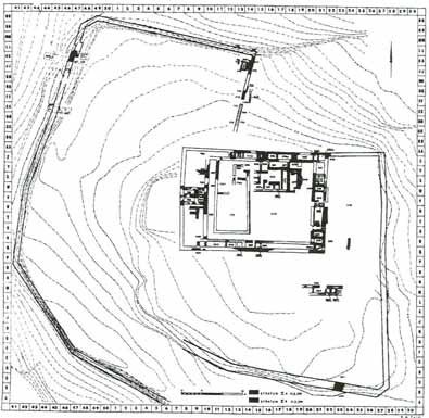 Figure 4. The general plan of the Iron Age palace and citadel proposed by Y. Aharoni after his 1962 excavations (Aharoni, Y. Excavations at Ramat Rahel seasons 1961-1962, (1962), Fig. 6).
